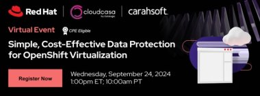 Red Hat, CloudCasa, and Carahsoft hosted an exclusive virtual event on September 24 to explore how Red Hat OpenShift and CloudCasa work together to deliver secure, scalable and low-cost data protection for virtual machines (VMs), containers and persistent volumes across OpenShift environments.