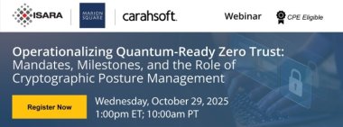 Carahsoft, Marion Square and ISARA hosted a session on Wednesday, October 29 at 1:00pm ET, where participants discovered how this essential strategy provided the visibility, control and agility needed to achieve compliance and deploy a Quantum-Ready Zero Trust Architecture.