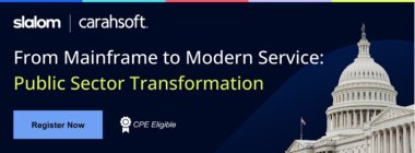 Join Slalom on January 27th for our modernization webinar, From Mainframe to Modern Service: Public Sector Transformation, designed to give you and your agency a clear, practical roadmap for moving beyond legacy systems.