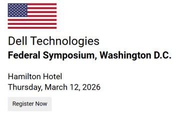 Dell Technologies is purpose-built to help you achieve your mission-critical goals. Join us for a Dell Technologies Symposium -- a curated experience designed to equip Federal leaders with practical strategies and emerging technologies that deliver real mission-driven results. Connect with peers and industry experts to explore solutions in AI and the latest innovations; providing the tools and insights needed to advance your agency's strategy with confidence.