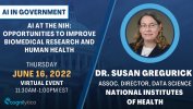The June 2022 AI in Government event featured guest speaker is Dr. Susan Gregurick, Associate Director of Data Science at the National Institutes of Health and her presentation‘AI at the NIH: Opportunities to Improve Biomedical Research and Human Health’ Thursday, June 16, 2022 from 11:30 AM - 1 PM ET! In biomedical and clinical research, AI has the potential to improve health and healthcare systems that will result in positive pat...