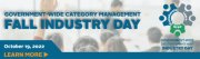 Registration is open for the Fall Government-wide Category Management Industry Day! Join us from 10:00 to 2:30 PM, EST on October 19, 2022 for this FREE Virtual Event. Some of the sessions will include: A Fireside Chat with The Office of Management and Budget (OMB) and Small Business Administration (SBA) on FY23 Small Business Initiatives. A breakdown of the SBA’s Surety Bond Guarantee Program A demo of FREE Market Research tools to help...