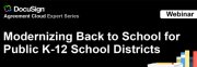 More than 1300 government organizations use DocuSign to enable citizens, businesses, and staff to work smarter and more effectively with self-service forms, electronic signatures, pre-populated agreements, and automated approval processes.Join your peers and other leaders in K-12 School Districts to see how you can transform your agreement process by eliminating paper, automating workflows, and connecting the systems within your organization.T...