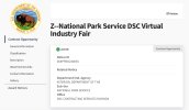 The National Park Service (NPS), Denver Service Center (DSC) has posted a notice in SAM.gov for the June 26, 2024 DSC Virtual Industry Fair (see attached notice). To register, search for the title or the notice ID DOIPFBO240035 in SAM.gov (see below).Once you locate the notice, open the attachment, scroll down to the link (DSC Virtual Industry Fair), hold down the CTRL button while clicking on the link. If you receive a notice that registratio...