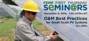 The U.S. Department of Energy (DOE) Federal Energy Management Program (FEMP) will present O&M Best Practices for Small Scale PV Systems, a live First Thursday Seminar on December 4, 2014, from 1:30 p.m. to 3 p.m. This new First Thursday Seminar will feature a new training format with enhanced features that include hands-on video demos, audience polling and Q&A, and links to additional resources and downloadable documents. The seminar w...