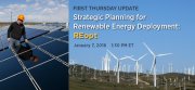 The Department of Energy's Federal Energy Management Program is pleased to announces its first First Thursday Update: Strategic Planning for Renewable Energy Deployment: REopt. The update will air January 7th at 1:30pm to 3:00pm EST. The update will provide current information about how to develop a strategic approach to enterprise-wide renewable energy deployment, including systematic approaches to meet agency-wide strategic sustainability go...