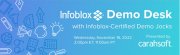 Registration is Closed Interested in learning more about Infoblox? Join our Infoblox-Certified Demo Desk for a 30-minute demo to learn how Infoblox can provide a smarter and more efficient way to manage and protect your network from the impacts on security that are arising due to evolving IT architectures. You will learn how to leverage the foundational infrastructure you already rely on every day - DNS, DHCP, and IPAM. Our presenter will also...