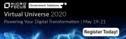 Join Micro Focus Virtual Universe 2020 - a two-day event that can be accessed from anywhere! Expect an agenda filled with one-on-one sessions, insights on new technology, and keynotes from industry experts. Featuring a U.S. Public Sector Track: This is a showcase of how U.S. Government agencies are solving today's challenges with enterprise-grade software solutions to deliver speed, agility, security, and insights to support digital transforma...