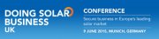 Scheduled to take place on the afternoon before Intersolar, our half day conference is designed to prepare you for thriving business opportunities in the UK solar market. Whether you're looking to export for the first time, or a well seasoned operator in the UK industry, this conference will provide you with the latest knowledge of the political, regulatory and financial environment and prepare you for successful business operations in Europe'...