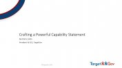 Both the government and private sector markets use a unique business development tool called a Capability Statement. This webinar will help you to understand the Capabilities Statements, while demonstrating how you will be able to craft a powerful door opening Capability Statement yourself. This webinar will help you develop a powerful document that you can use to help compel potential teaming-partners to work with your business. Contracting w...