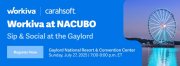 Cap off your Sunday at the NACUBO Annual Meeting with Workiva! Join us for our exclusive happy hour at 7:00 p.m. in the Atrium at the Gaylord to unwind, make new connections, and enjoy some refreshments. Please remember to wear your NACUBO badge to gain entry to this event.
