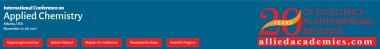 Applied Chemistry 2017 invites all the participants across the globe to attend International Conference on Applied Chemistry during November 27-28, 2017 at Atlanta, USA. Applied Chemistry 2017 is a remarkable Chemistry conference which brings together the top professionals in the field along with the highly affiliated professors to explore the advancements and latest applications achieved in the field of chemistry. Applied Chemistry 2017 provides the chance for Scientists, researchers, Practitioners and Scholars to present and discuss the most recent innovations, trends, and concerns, practical challenges encountered and the solutions adopted in the fields.