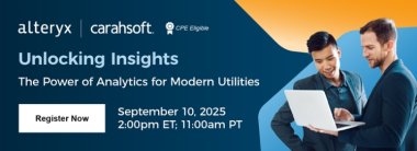 Download the webinar to learn how leading electric, gas and water utilities are using artificial intelligence and modern analytics to solve operational challenges, boost performance and deliver better service. Backed by over 20 years of industry experience, our experts will walk you through real-world success stories and actionable strategies for transforming raw data into predictive insights.